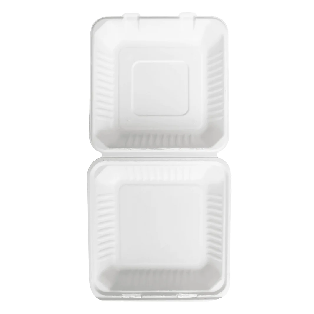 9 Inch PFAS-Free Bagasse Hinged Clamshell Containers are eco-friendly, compostable food containers made from natural bagasse fiber without harmful PFAS chemicals. Featuring a hinged lid, they provide a sturdy, sustainable option for takeout, meal prep, and food storage.